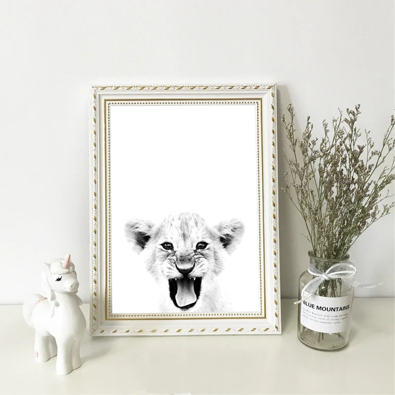 Scarica Gratis Bebe Lion Imprimer Animal Sauvage Noir Blanc Affiche De