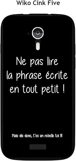 Téléchargement gratuit Coque Wiko Cink Five Design Citation Rebelle Texte Blanc Fond Noir